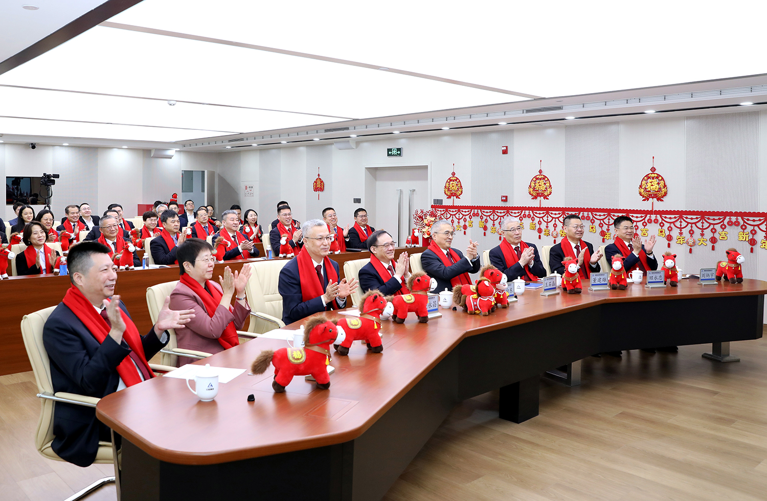 团拜会上,各经营单元、实体企业领导班子通过视频互致新春祝福。现场欢声笑语不断,处处洋溢着喜庆祥和的节日氛围。